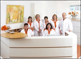 Zu unserem Praxisteam gehören (evtl. nach Bild!): Frau Ursula Klein, Frau Gabriele Bader, Frau Sabine Pastau, Frau Gerlinde Fuchs und Frau Monika Linsmaier, Herr Dr. med. Michael Rafferzeder |